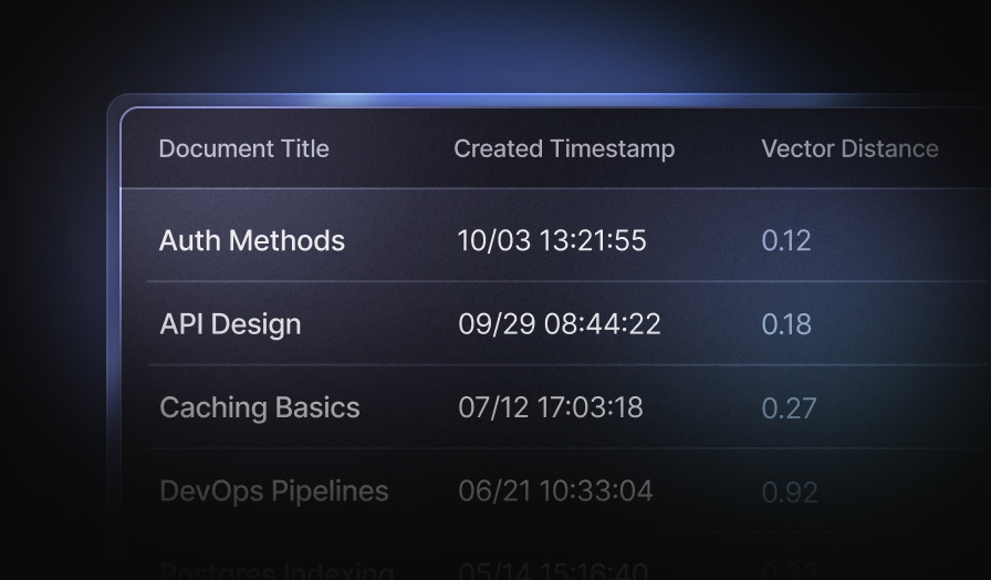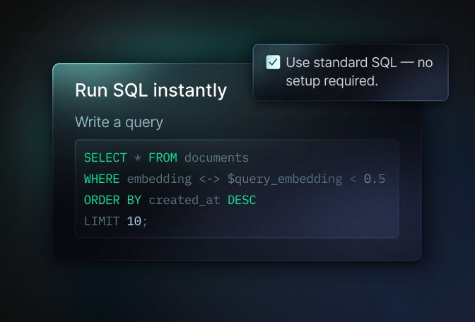 - pgvector built in- Store and search vector embeddings using pgvector, with native support for HNSW indexing and multiple distance metrics.